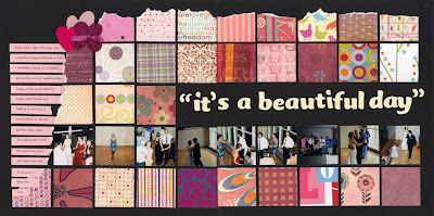 This week’s how much is too much challenge is from Caroline who challenged us to use 30 scraps on a layout. I’ve been thinking about inventive ways to do this but ended up with my trusty square punch. My layout is also for the journaling challenge – “the song remembers when” pick a song and journal about the memories it brings to mind. I had a completely different song in mind when I started (hey jealousy by the Gin Blossoms) but I couldn’t find the photo I wanted so I came across some wedding photos and viola, a new layout was born. Who doesn’t love Beautiful Day by U2? Makes me happy every time I hear it. I’ll keep digging for the other photo though – 1994 was a year that deserves to be scrapped. 🙂