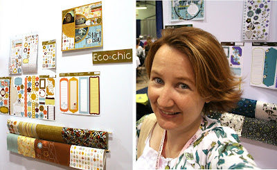 We also checked out Glitz but my eye was drawn over to the Sonburn booth – there were a few lines that I really liked – Eco Chic and Olivia (I *think* that’s the name) were my favorites. We were marveling at how my top matched the papers – so I had to get a pic of me with the papers.