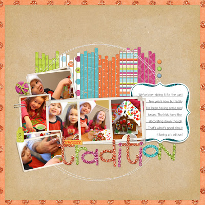 LOVE your layouts! (Especially the “Tradition” one! Love those strips and colors! Just so… yummy!) And that card is beautiful. Your kids could be models! They are just adorable! 🙂