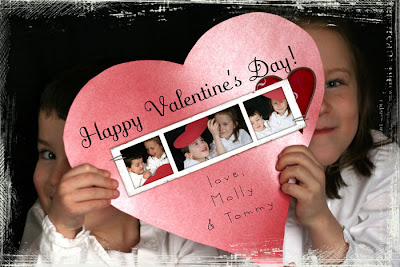 I like to send e-cards to friends and family for Valentine’s day – usually because I’m running a little behind but hey, it helps saves a tree – right? I did a variation on this card last year where I had the kids hold a blank heart, but this year I added photos to the heart rather than just text. I think it’s a fun effect. Of course nobody would cooperate for when I was taking the photos so this was the best I could come up with!