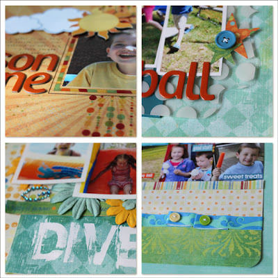 My friend Tami, a whirlwind over at Get It Scrapped, asked me to guest design for her new kit club, Scrap this Kit, this month. I was thrilled – lots of summery Fancy Pants goodies to play with and oodles of fun embellies. Here’s a couple of sneaks from my work: