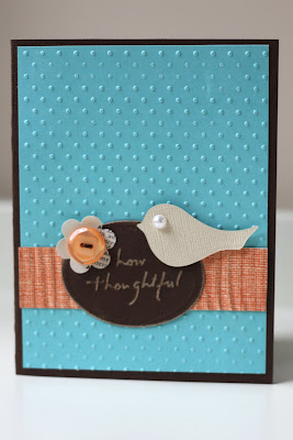 Oh, so sweet. I love the dotty embossed paper. It reminds me of those super soft blankies you can get for babies.