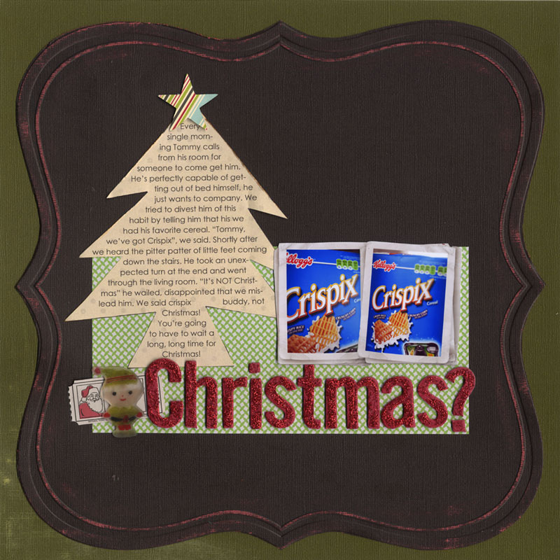 You might also notice that I used a few other digital techniques on this layout – I used a digital frame for my photos and I also printed out a digital embellishment (the elf was a sticker that I printed on shrinky dink plastic.