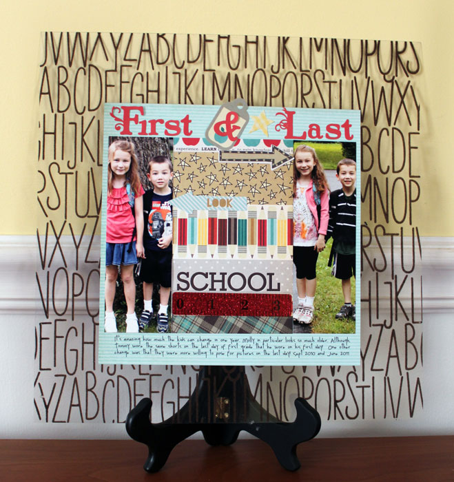 I was asked to review the latest collection from Fancy Pants “Off to School” on the Scrap Review. It’s a fun collection, very strong theme imagery but the b-sides of the paper make it usable for other projects. I made a layout with the first and last day of school photos: